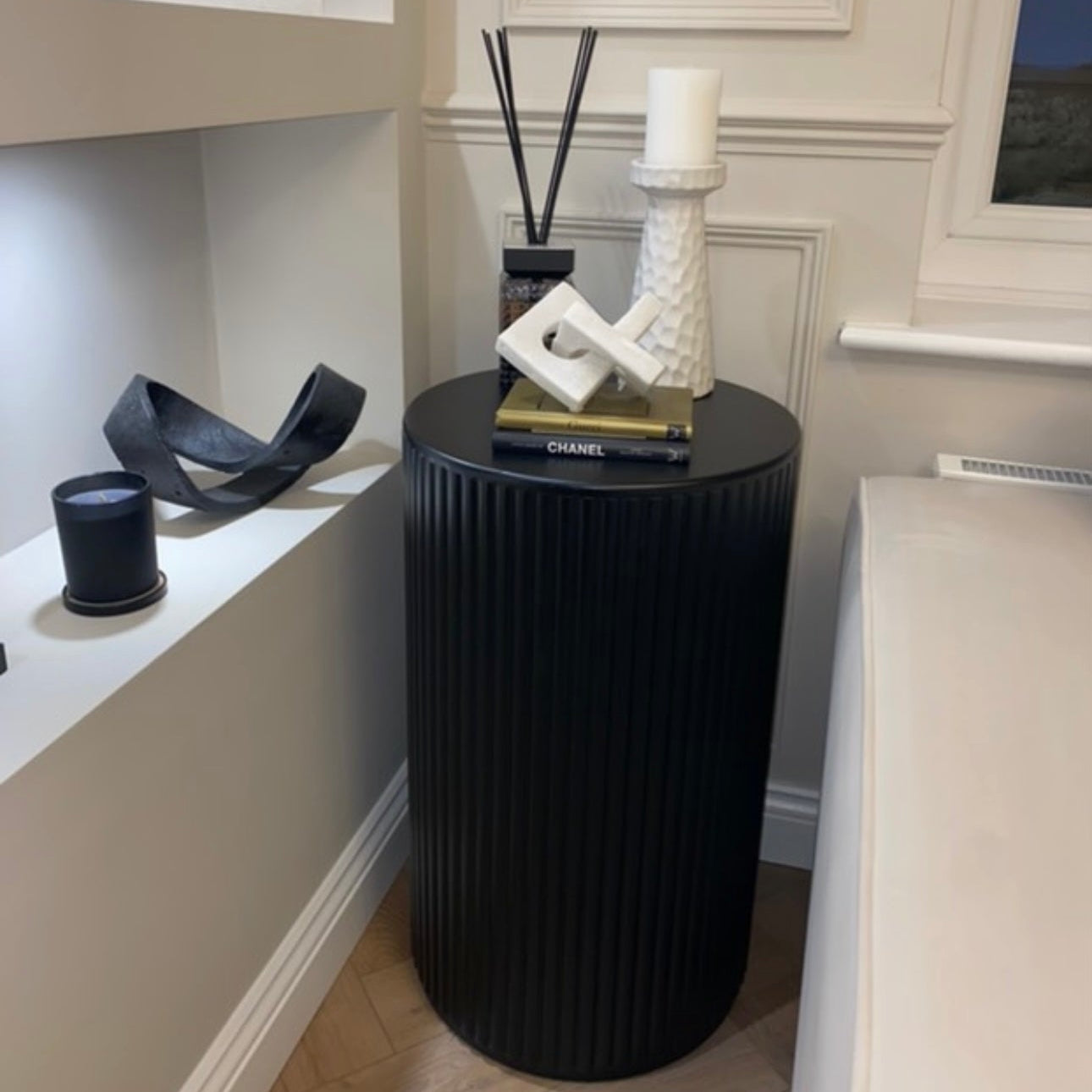 Handcrafted from sustainable cedar pine, designed to bring calm and order to your home. Built-in wireless charging, each piece effortlessly powers your devices while keeping cables out of sight.